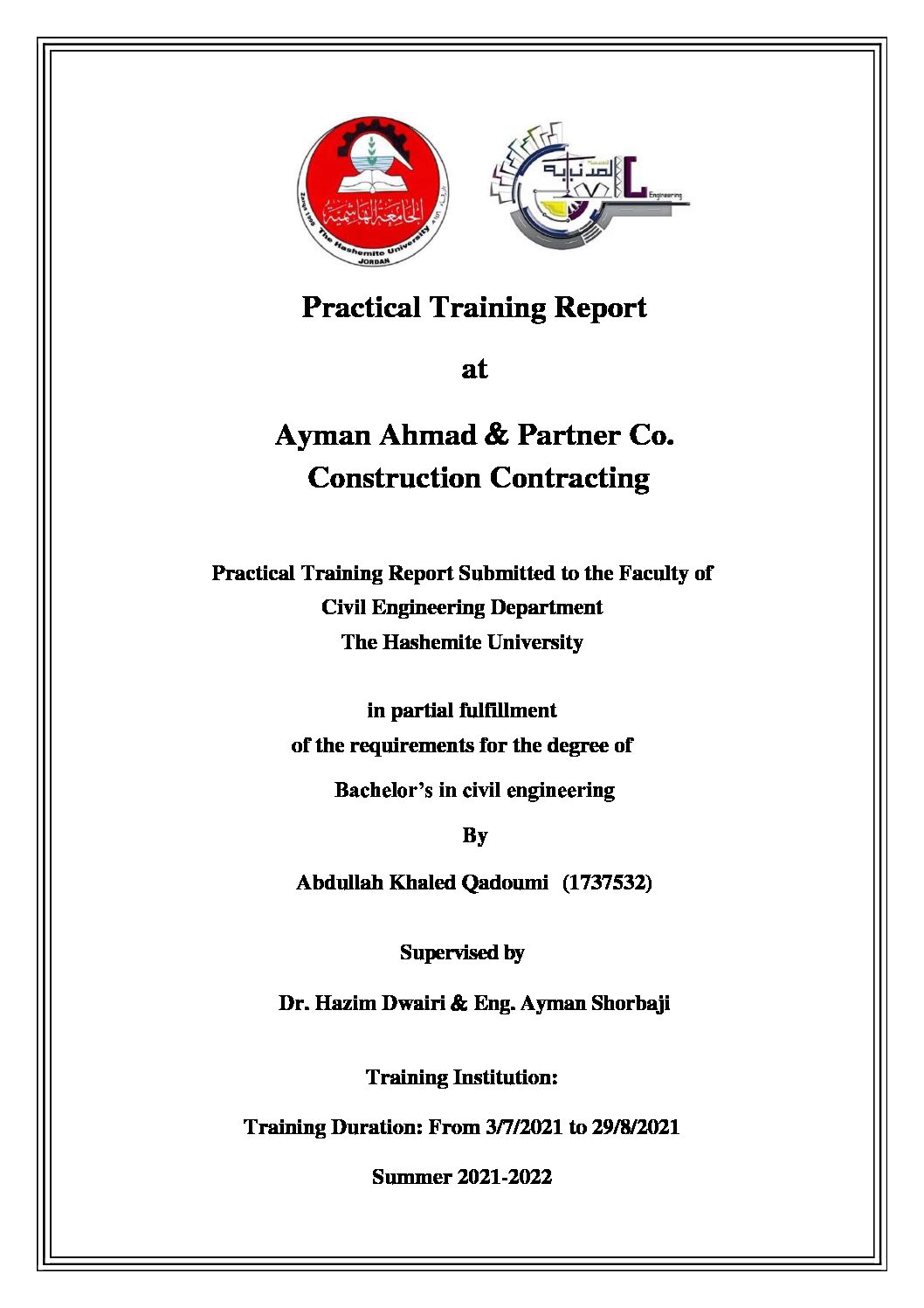 التدريب عملياً لمدة ثمانية أسابيع عمل متصلة داخل الأردن أو خارجه، وأن يتم التدريب في المؤسسات والشركات والدوائر الحكومية والخاصة، العاملة في المجالات الهندسية، والتي توافق لجنة تدريب الطلبة في الكلية على التدريب فيها.