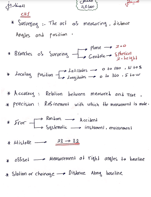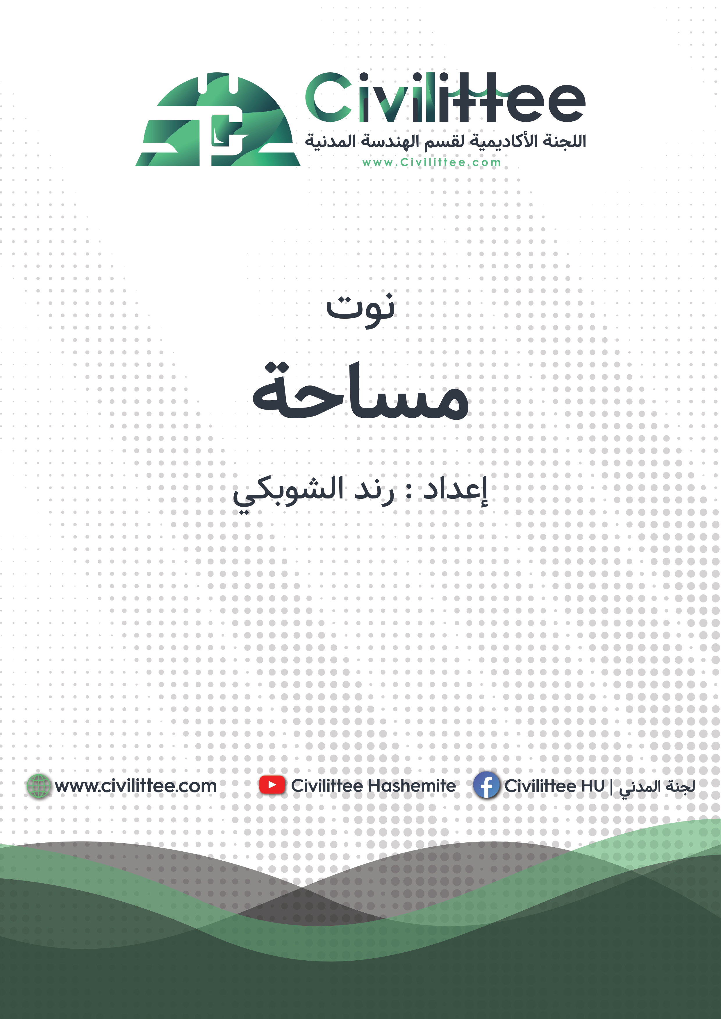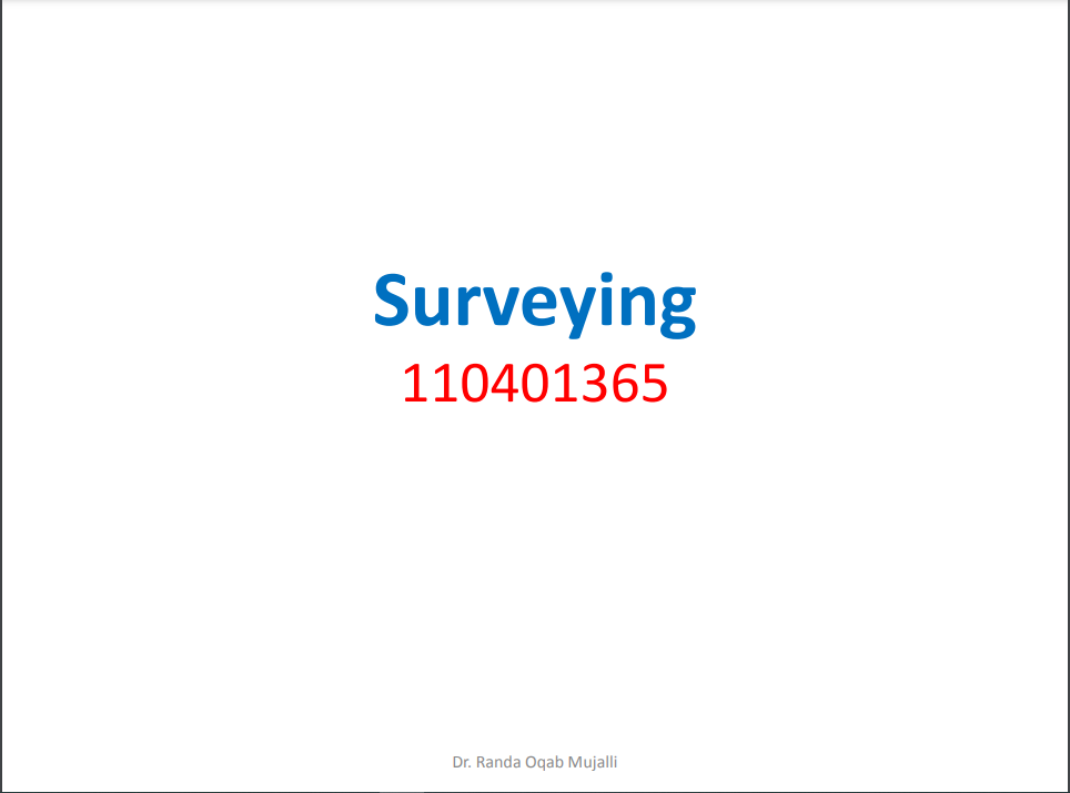 تتناول هذه المادة أساسيات المساحة, قياسات الشريط (الإجراءات والأخطاء والتصحيحات)؛ التسوية وتطبيقه في اعمال الكنتور والمقاطع الجانبية والعرضية ؛ قياس الزوايا والاتجاهات؛ المساحة العرضية، المساحة الطبوغرافية. حساب المساحات والحجوم للاعمال الترابية.